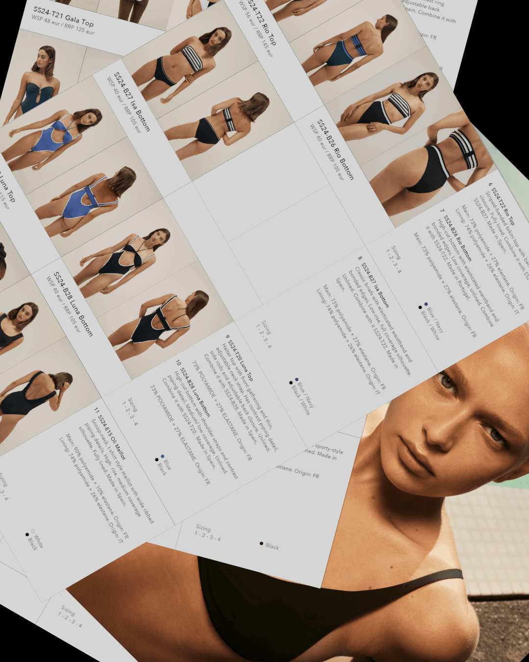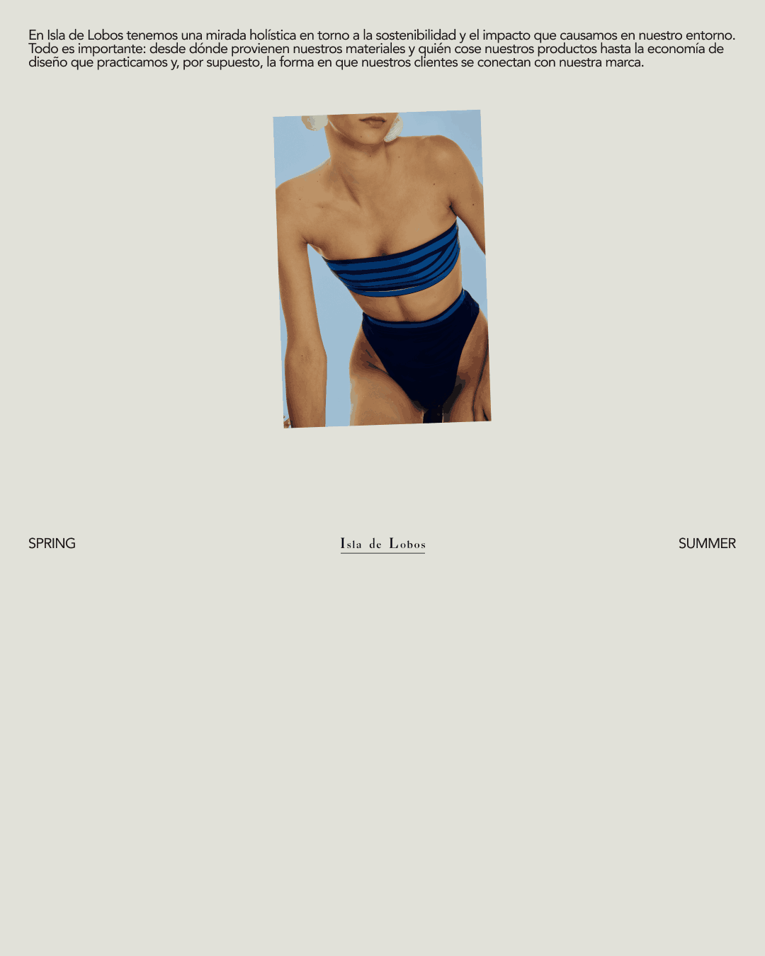 collection lookbook — printed and digital Isla de Lobos is a sustainable swimwear brand built around timeless design and environmental responsibility — eco-friendly materials, ethical craftsmanship, a take-back recycling program. For their Spring/Summer collection I designed the full lookbook across both print and digital formats, creating a layout system that balances editorial fashion imagery with clear product information. I also designed the brand's business cards. The challenge was to let the photography lead while maintaining the clean, considered aesthetic the brand stands for.